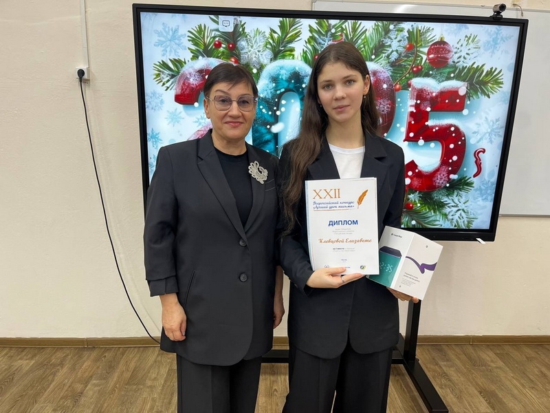 Елизавета - победитель школьного и районного этапов Всероссийской олимпиады школьников, победитель Всероссийского конкурса сочинений 2023 года федерального уровня. Подготовиться к конкурсу десятикласснице помогла учитель русского языка и литературы Светлана Кукушкина.