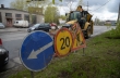 Череповецкий подросток утащил три дорожных знака к Дворцу металлургов Фото:Газета "Речь"