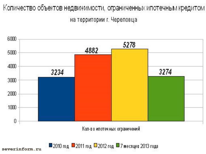 Число объектов недвижимости, ограниченных ипотечным кредитом на территори Череповца