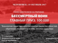 Проект «Бессмертный воин» проводит представитель НП «Марафон» Артем Иванов. Он уже был организатором таких мероприятий, как 200-километровый забег по берегу Белого озера, а также «Безжалостный остров», на котором вологжане выживали только с помощью того, что дала природа.