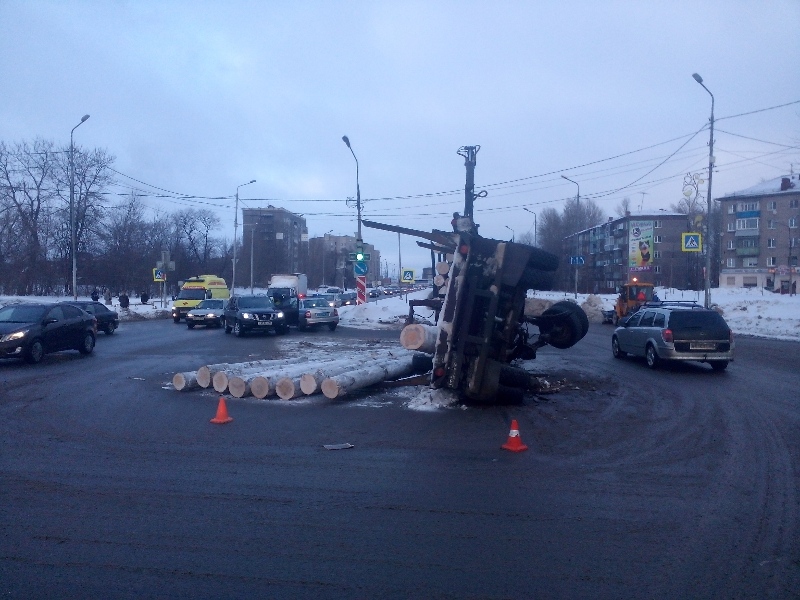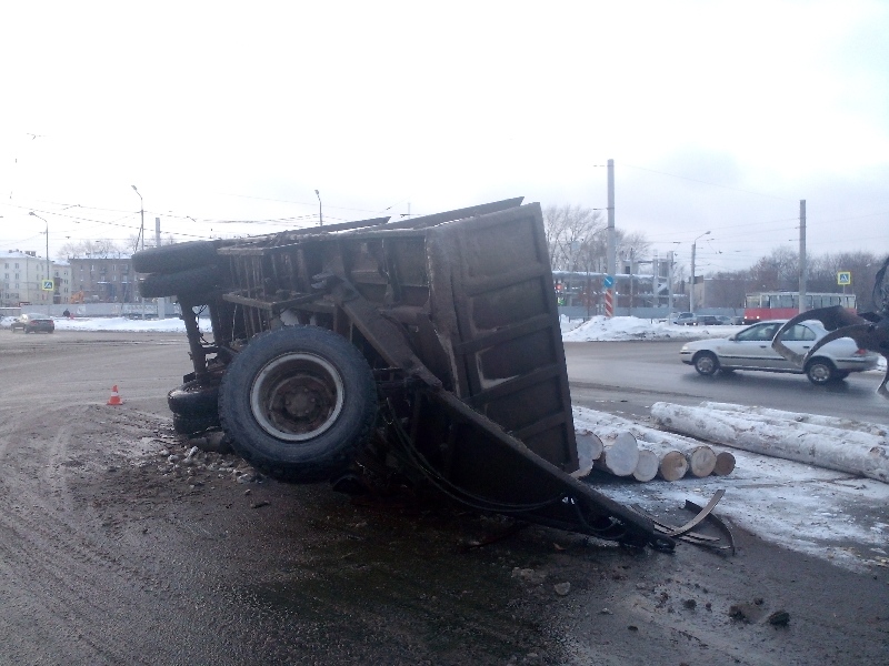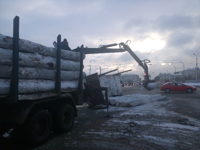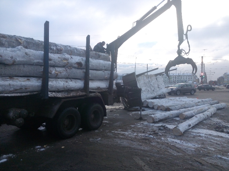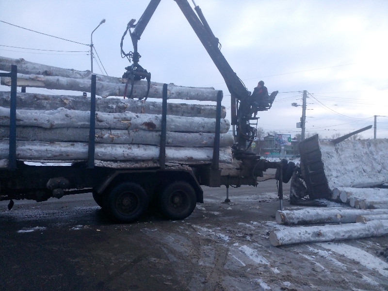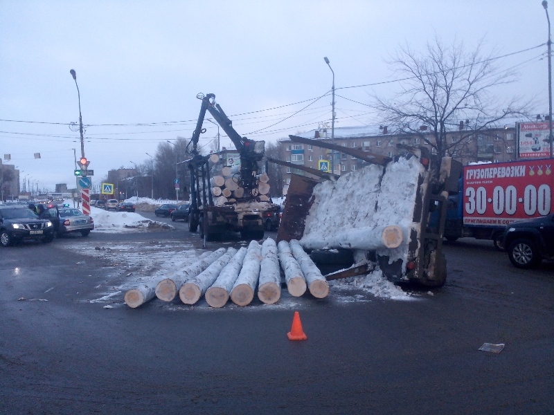В Череповце перевернулся прицеп с лесом (ФОТО)