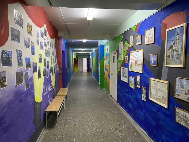 Проект «Россия в красках» начался с банального случая – подростков застали за разрисовыванием стен в туалете. Вместо наказания ребят привлекли к преображению здания, предложив воплощать художественную мысль прямо на стенах в коридорах.