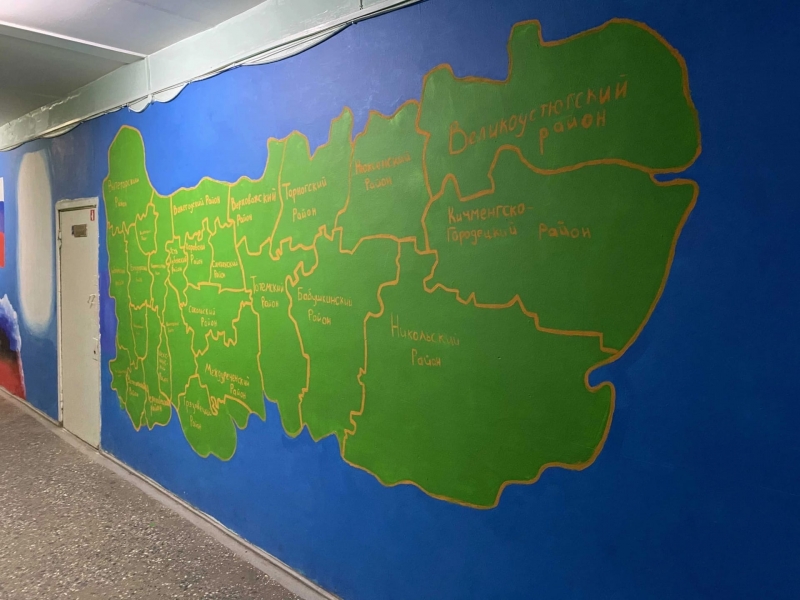 Раньше они были темно-коричневыми, теперь в школе забыли про мрачные оттенки. Красуются достопримечательности города и области, карта Вологодчины и другие интересные вещи. Группу энтузиастов возглавляет учитель ИЗО Наталья Шаркова.