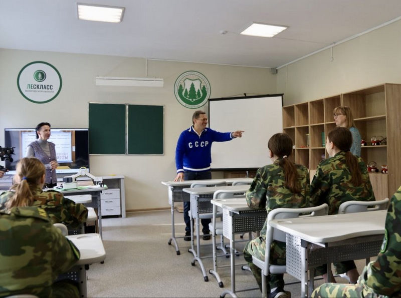 Занятие прошло в Перьевской школе в Вологодском округе. В классе 30 детей. Они прекрасно знают о направлении, которому уделено внимание в их школе. «Лесные» классы – это новшество наступившего учебного года. Их задача – снизить дефицит кадров в отрасли.