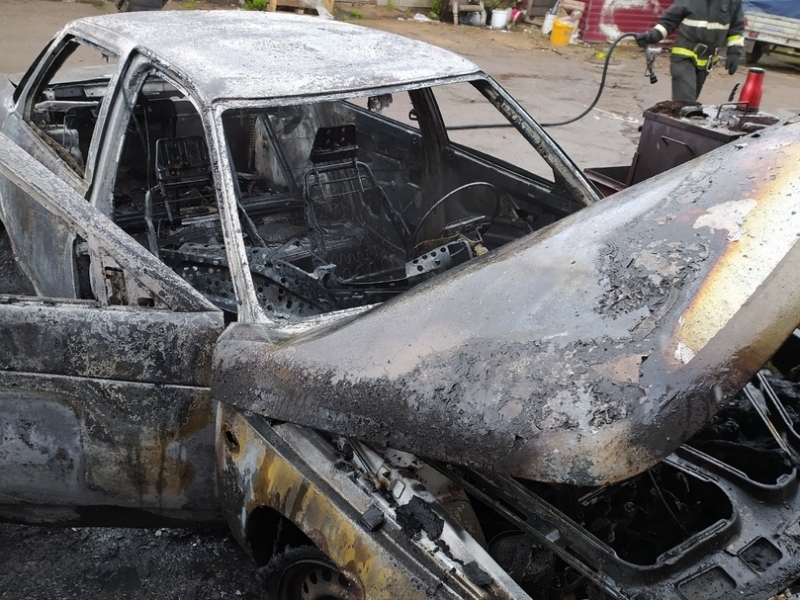 Пожар произошел днем 21 июля. Владелец автомобиля "Волга" перевернул ее разобранный корпус.