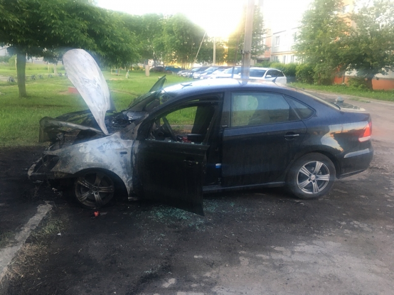 Загорелся "Фольксваген Поло" 2016 года выпуска, припаркованный во дворе на Возрождения, 74А. Вызов поступил в 1:17 23 июня.