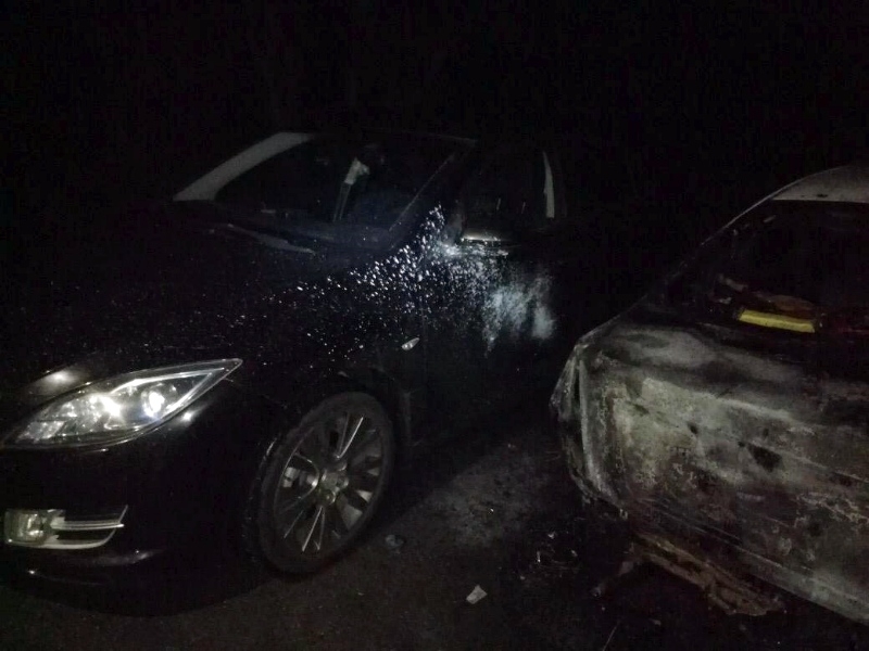 Огонь повредил фары, бампер, стекла, задние колеса, багажник и строительный инструмент внутри его. Также пламя затронуло стоящую рядом "Мазду".