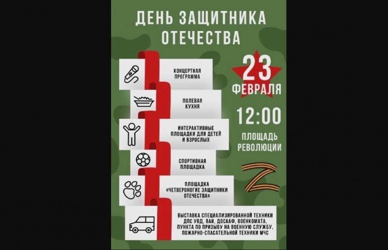 Мероприятия пройдут непосредственно 23 февраля на Площади Революции.