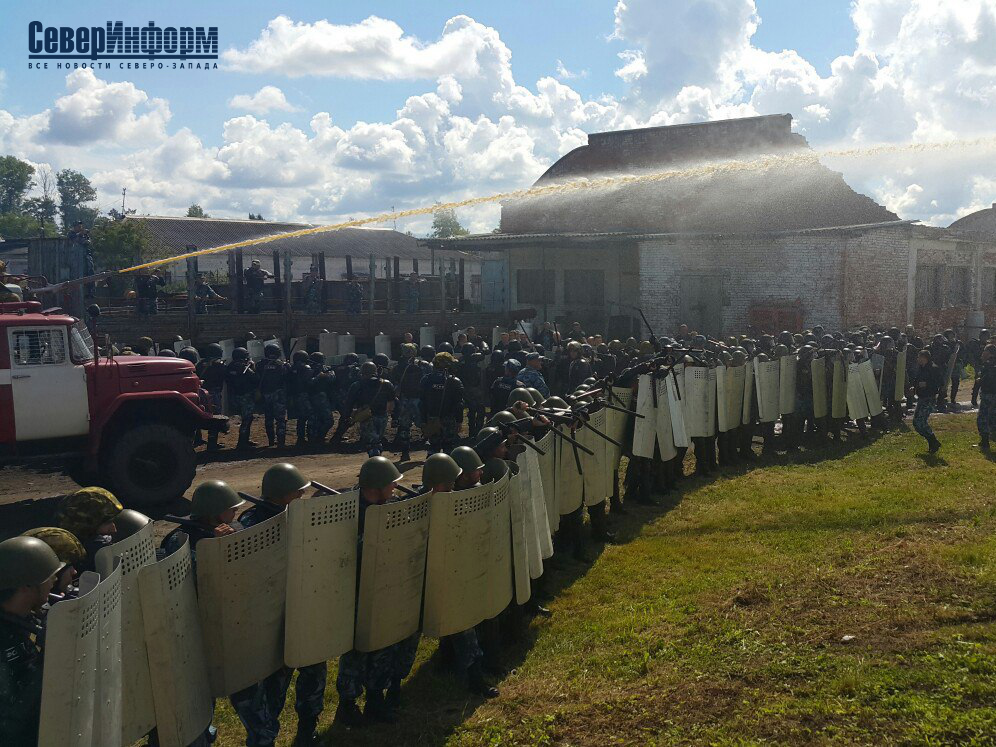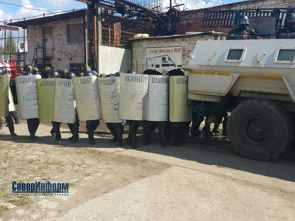Пока мы мирно беседовали с психологом, на плацу учреждения появились сотрудники в шлемах и с щитами. Дело в том, что не получив никакого результата от переговоров с осуждёнными, руководство управления ФСИН приняло решение провести силовую операцию. В это же время на территорию заехала бронемашина «Выстрел» и пожарный автомобиль.