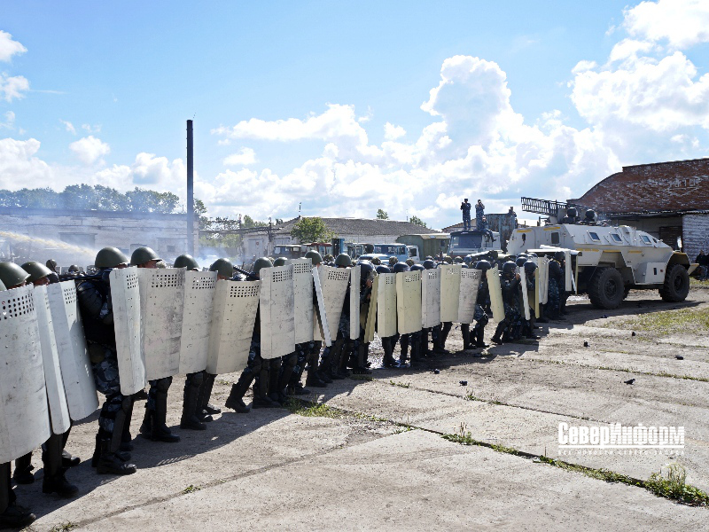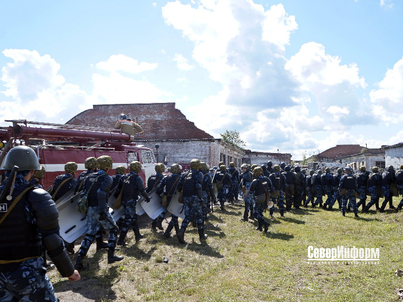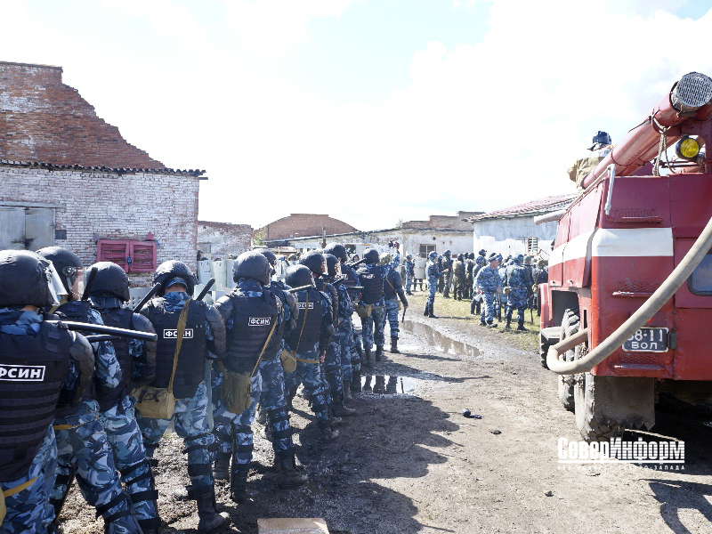 Роли всех осуждённых исполняли сотрудники УФСИН России по Вологодской области. Стоит отметить, что делали они это весьма талантливо и правдоподобно: представителей администрации колонии они забрасывали какими-то предметами, при этом беспрестанно возмущаясь и выкрикивая свои требования. Руководство исправительного учреждения, к слову, самое что ни на есть настоящее, попыталось провести с преступниками переговоры, но эта попытка успехом не увенчалась.