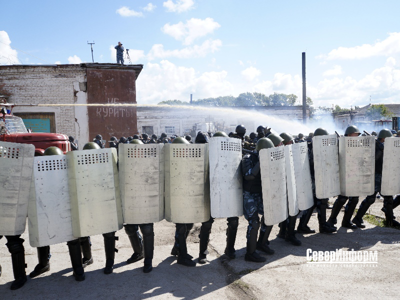Сводный отряд, в который, кстати, вошли работники всех исправительных учреждений области, следовал с двух сторон от техники, смыкая щиты единой «цепью». Сотрудникам УФСИН удалось сразу же разделить толпу осуждённых на две части, после чего они начали активные действия.