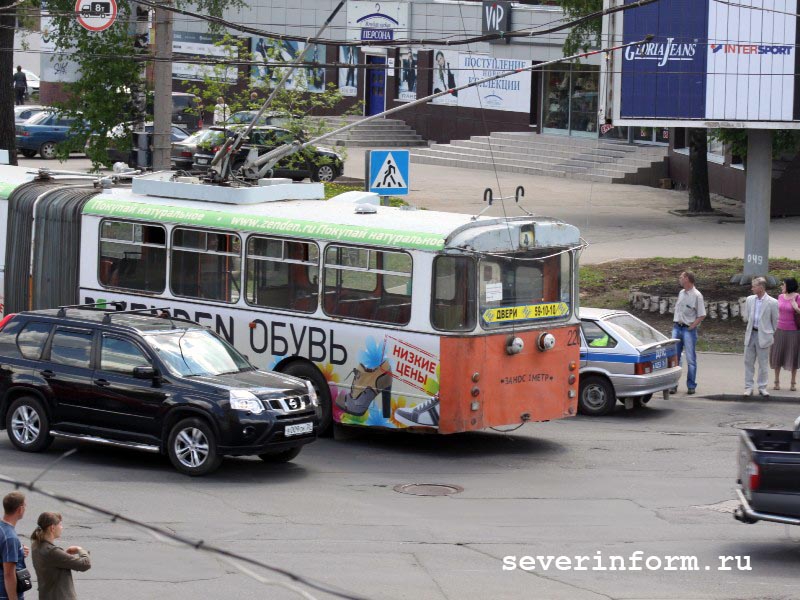 Из-за обрыва проводов в Вологде образовалась пробка из троллейбусов
