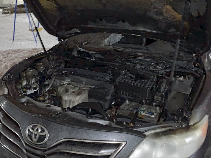 Легковушка получила значительные повреждения - выгорел моторный отсек, поврежден салон и лакокрасочное покрытие. По предварительной версии, машину подожгли, точную причину еще предстоит установить.