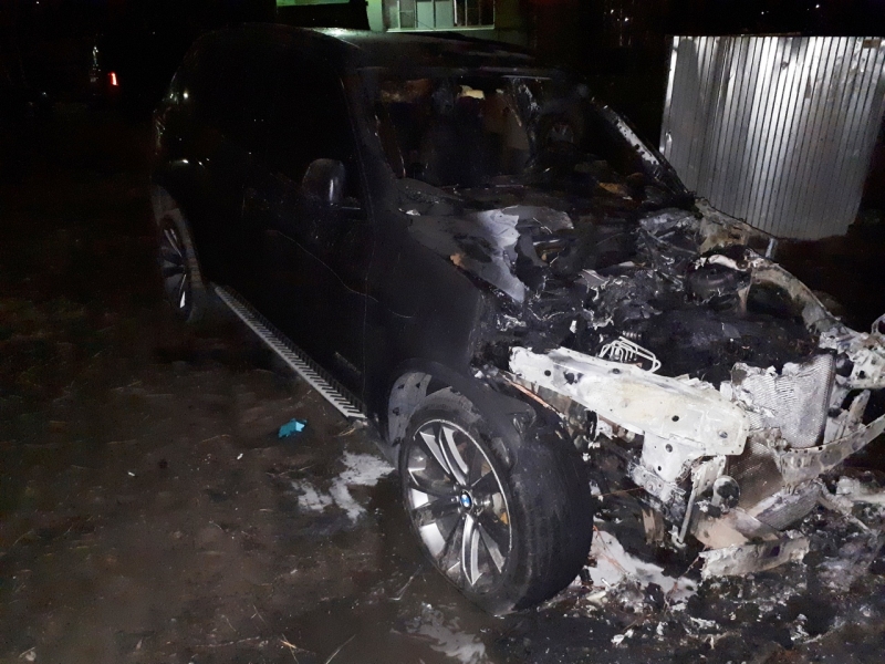 Вызов поступил в 2:30. На тушение выезжали 7 пожарных. Пламя повредило моторный отсек, передние колеса, панель управления, стекла. Закопчена внутренняя отделка крыши, повреждено лакокрасочное покрытие передней части иномарки. Ущерб составил 2 миллиона рублей. Причиной происшествия стал поджог.