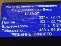 Всего законопроект поддержали 328 депутатов, против поправок высказались 104 человека.
