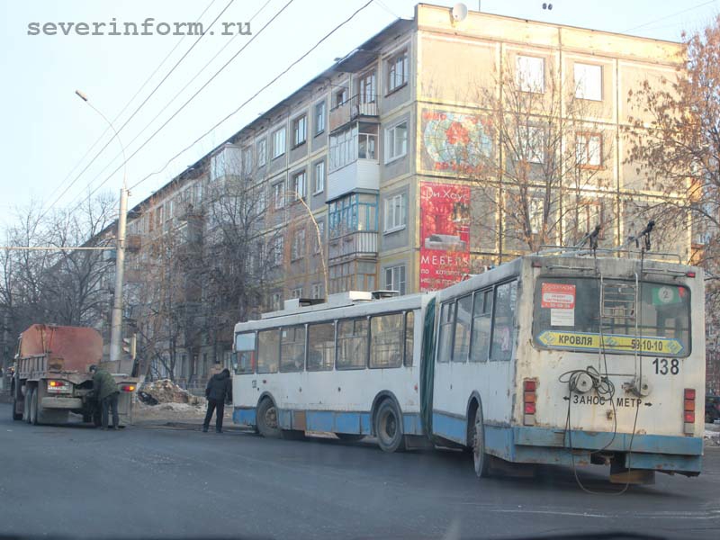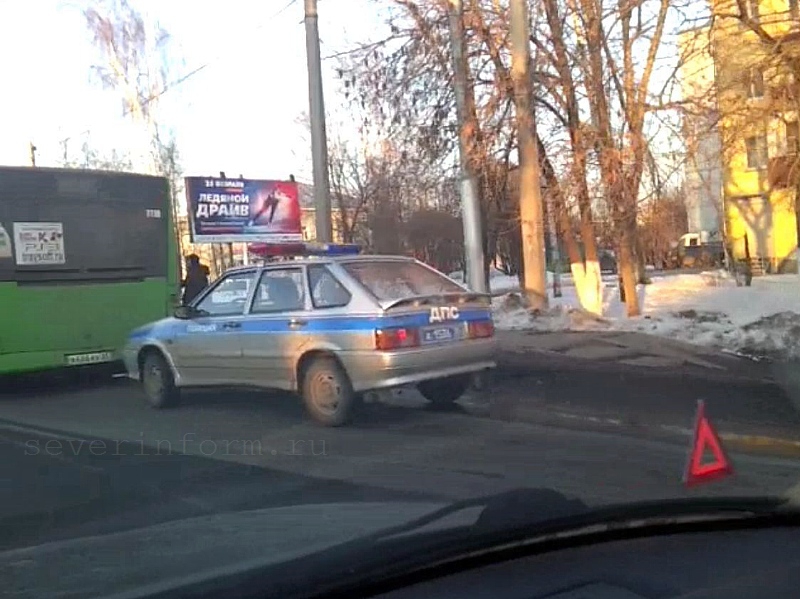Троллейбус второй час стоит на одной из центральных улиц Вологды после столкновения с легковушкой Фото:Пользователь mad dog (Форум auto35.ru)