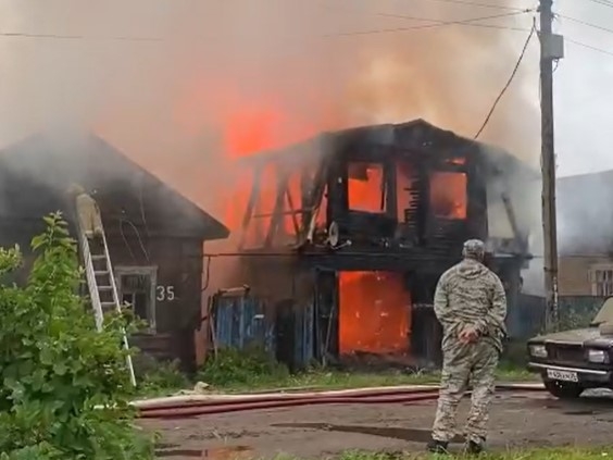 По предварительным данным, никто не пострадал. Вызов поступил в 9:45 в пятницу, 30 июня. Загорелись объекты на улице Пушкариха.