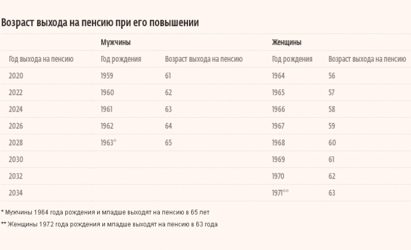 Переходные стадии пенсионной реформы коснутся мужчин, родившихся в 1959-1963 года и женщин с 1964 по 1971 год рождения.