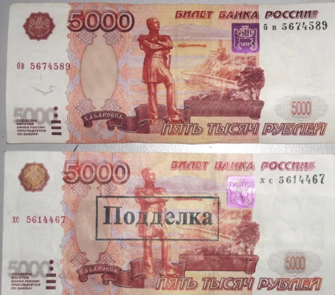 Чтобы обезопасить себя от подделок, нужно найти и проверить не менее трех защитных признаков банкнот. Проверяя защитный комплекс на лицевой стороне 5-тысячной купюры модификации 2010 года следует обратить внимание на переливающийся герб Хабаровска, выполненный блестящей краской зелёного цвета. Если наклонить купюру, будет видно, как по нему перекатывается яркая блестящая полоса. А на лицевой стороне есть переливающаяся защитная нить: при наклоне банкноты радужные цифры числа 5 000 двигаются, перемещаясь вверх-вниз относительно друг друга, поделились знаниями в Отделении по Вологодской области Северо-Западного главного управления Центрального банка Российской Федерации. Разглядывая банкноту на просвет, рекомендуется проверить водяной знак – портрет Муравьева-Амурского, на котором видны плавные переходы тонов и светлый водяной знак с изображением номинала банкноты. Попробуйте на досуге.