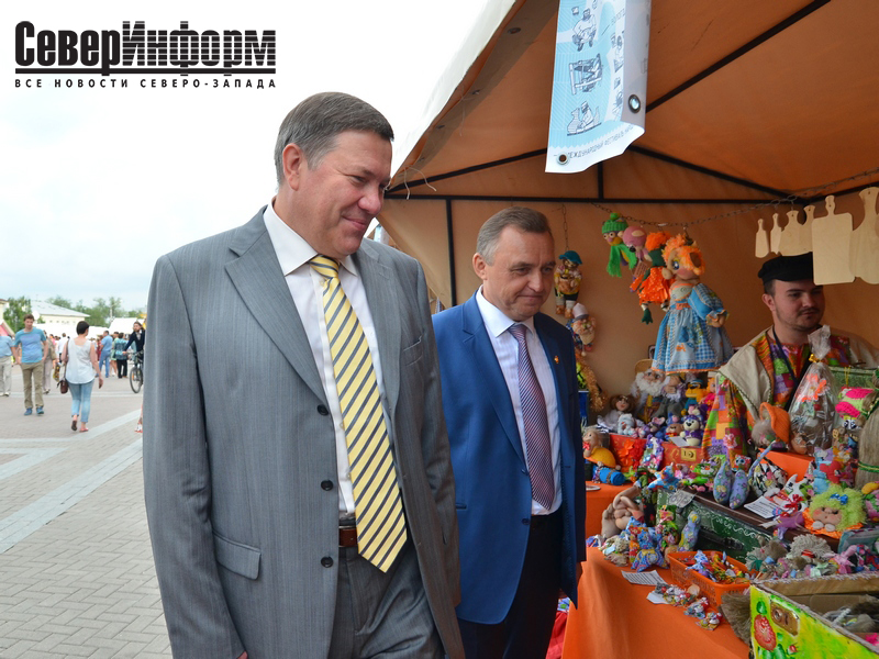 Однако так просто главу региона со сцены не отпустили - ему пришлось вспомнить пять пословиц о труде. С заданием губернатор справился, за что получил в подарок деревянный рубанок. Евгений Шулепов вручил Олегу Кувшинникову презент шикарнее — пятидесятикилограммовую подкову на счастье. Покинув сцену, первые лица отправились изучать ассортимент торговых рядов на площади. А он был обширен. Посетив «Голос ремесел», можно уйти с валенками, народными куклами, кружевом или каменным оберегом. На торговых рядах действительно есть что посмотреть, ведь на ярмарке продают творения своих рук ремесленники из 31 региона России. К тому же свои изделия представляют умельцы Белоруссии и Франции, сообщает ИА «СеверИнформ»