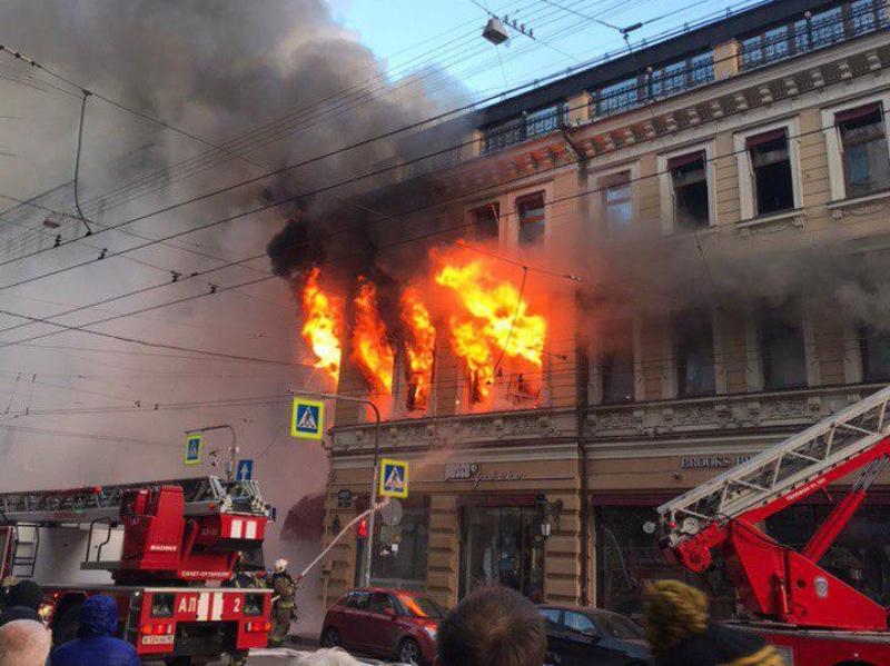 В старинном здании Петербурга пожар достиг 400 квадратных метров