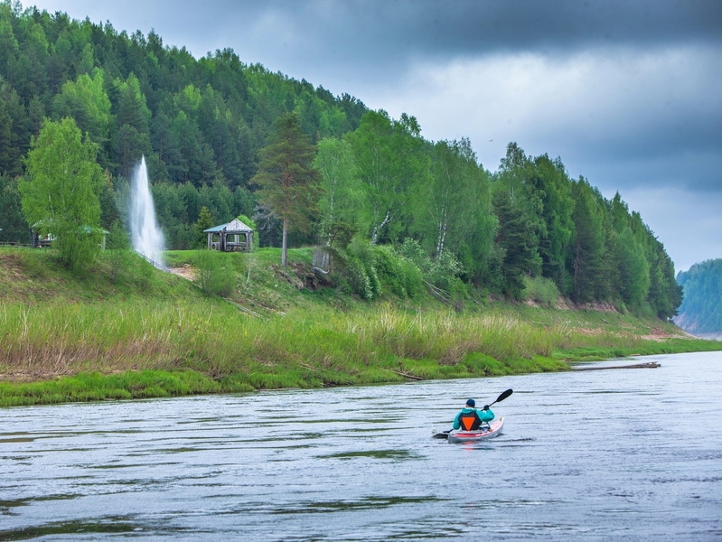 Биатлонист Максим Цветков доплыл на байдарке до Великого Устюга.