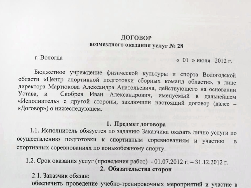 «Вологодская область сотрудничает с Иваном Скобревым с 2002 года. За это время он добился ярких побед, стал призером олимпийских игр. С 21 июня Иван включен в штат Центра спортивной подготовки сборных команд Вологодской области для подготовки к зимним олимпийским играм в Сочи. Контракт с Иваном Скобревым заключен с 1 июля 2012 года. Мы согласны на двойной зачет: Вологодская область - Хабаровский край», - отметил Олег Кувшинников.