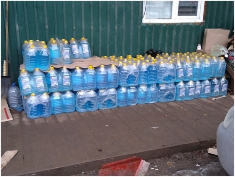 Около 1300 литров стеклоомывающей жидкости, содержащей метанол, нашли на складе на улице Клубова.
