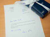 «Мое самое больше желание в том, чтобы дети всего мира могли заниматься и наслаждаться спортом в атмосфере мира. Желаю Вам как можно больше запоминающихся моментов в оставшиеся дни Зимних Олимпийских игр в Сочи. Искренне Ваш, Томас Бах», - значится в записке, которую оставил спортивный чиновник.