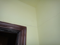 Никаких метафор - в доме, о котором мы уже неоднократно писали (в том числе и в разнообразные инстанции), в прямом смысле слова треснула стена. На любительских фото трещина, может быть, и не кажется таким уж страшным делом, да только дверь там уже перестала закрываться.