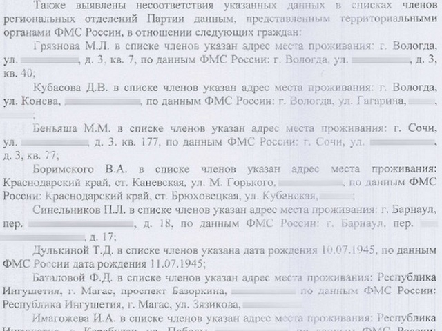 Читаем ответ Министерства юстиции дальше. На следующей странице «засветился» сам вожак вологодских «навальновцев». Евгений Доможиров с другим своим соратником пошел еще дальше. Он указал в документах для регистрации партии свой адрес, согласно которому честь и совесть протестного движения имеет честь проживать на улице Псковской. Правда, когда Минюст при проверке запросил данные о г-не Доможирове в УФМС, миграционщики ответили, что Доможиров там не прописан. То есть, глава оппозиции для Минюста стал попросту бомжем.