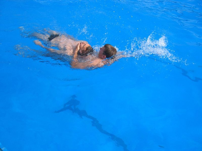 Когда тонущий скрылся под водой, необходимо тоже нырнуть, ухватить за волосы или руки, поднять на поверхность. Голова должна быть над водой, чтобы больше не поступала в легкие. То же касается перемещения к берегу – только лицом вверх, чтобы потерпевший не нахлебался еще больше. Это заметно повышает шансы на спасение на суше.