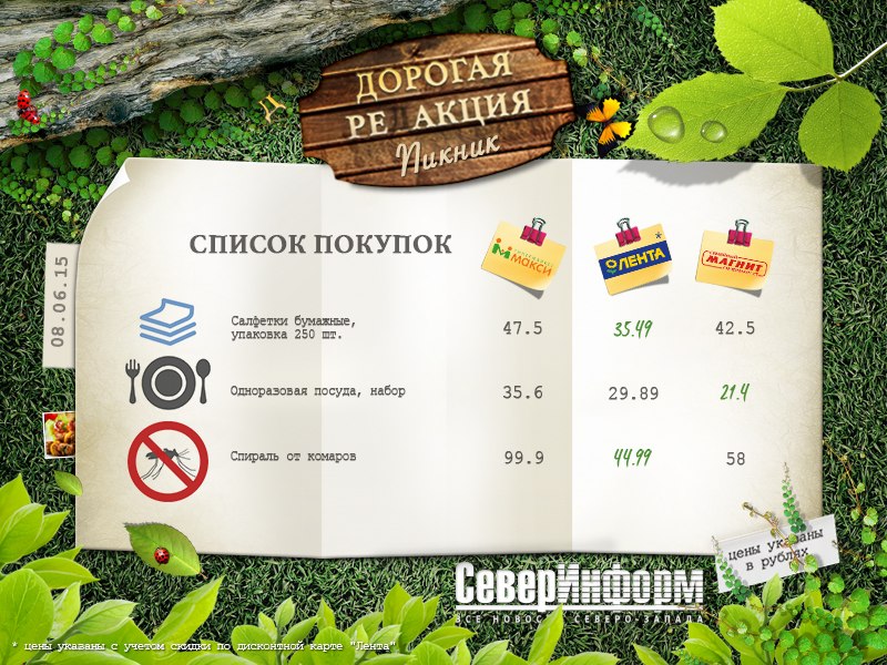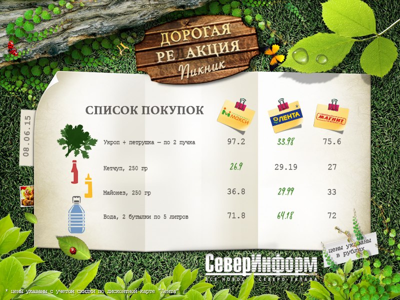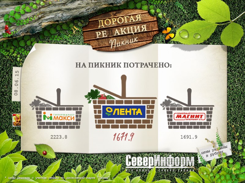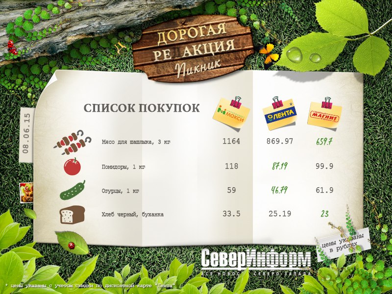 Да-да, редакция ИА «СеверИнформ» собралась на шашлыки. И спецвыпуск нашей постоянной рубрики посвящен именно тому, как наиболее выгодно закупиться всем необходимым для выезда на природу.
