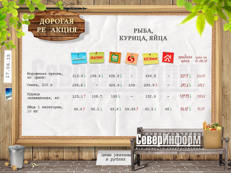 Ну а в этой категории все очень даже радостно. Рыба, курица и яйца словно сговорились и дружно упали в цене. Особо ощутимо подешевела рыба. Кстати, в треске очень мало жира, так что худеющие, смело бегите в магазин за правильным питанием.