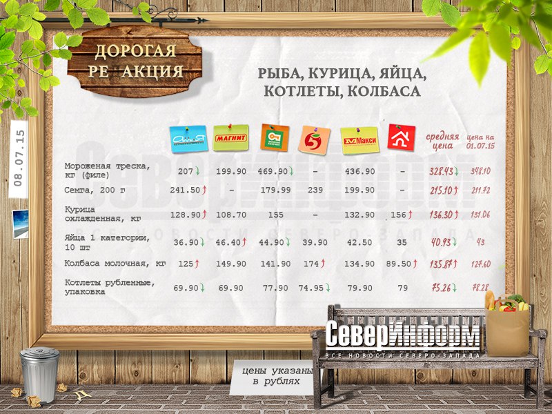 Отмечается рост цен на колбасу и одновременное снижение на котлеты. Колебание цен, кажется, не связано с изменениями стоимости мяса. Ну, или кто-то не связан с мясом в принципе...