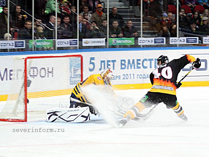 Счет на табло открыли хозяева площадки. На 9-ой минуте шайбу забросил Теему Лааксо. Ассистировал финскому защитнику Пахрудин Гимбатов. Во втором периоде череповчане упрочили свое преимущество. Под занавес игрового отрезка капитан сталеваров Евгений Кетов пробил оборону гостей. В большинстве он довел шайбу до цели с помощью Теему Лааксо и Александра Рязанцева. Последний стал автором третьего гола, который состоялся через минуту.