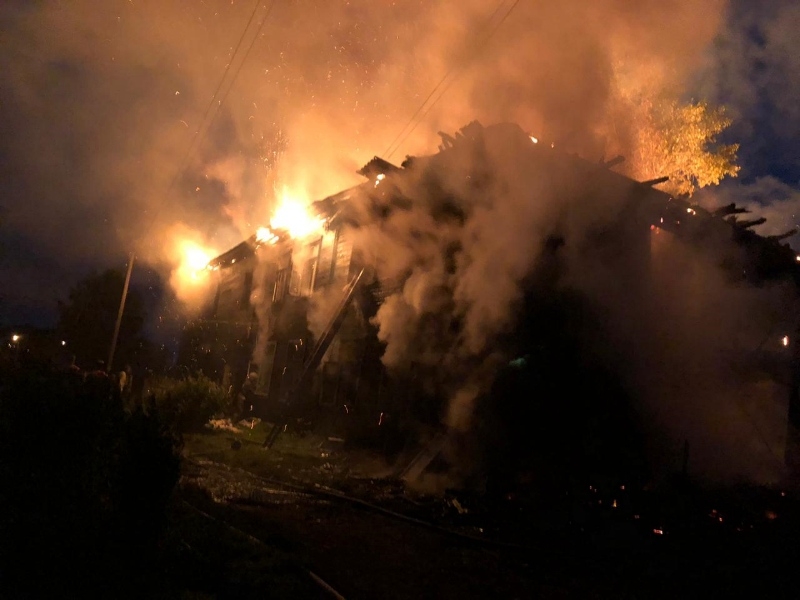 Возгорание произошло ночью 9 августа на Набережной, 10 в Ананьино. Около 2 часов загорелся деревянный двухэтажный дом с печным отоплением. В здании 20 квартир.