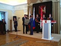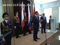 Как сообщает ИА «СеверИнформ», избранного Главу города и гостей церемонии встретил оркестр духовых инструментов «Классик-модерн бэнд». В начале мероприятия всем присутствующим объявили результаты прошедших выборов Главы города. Затем Евгений Шулепов принес присягу.