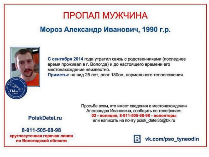 24-летний Александр Мороз не выходит на связь с родственниками с сентября