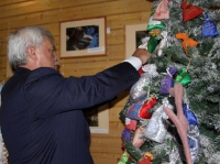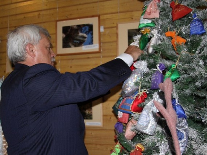 Георгий Полтавченко оставил в Доме Деда Мороза сувенир в память о своем там пребывании. На одну из многочисленных елочек он повесил свой именной мешочек. Точно такие же там оставляли и другие почетные гости, в числе которых и губернатор Вологодской области Олег Кувшинников, и Президент России Владимир Путин.