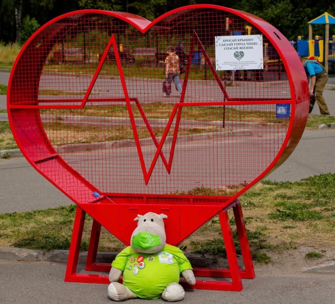Первое «Сердце» появилось в июле возле Дворца Спорта на Конева. Это продолжение системной просветительской работы в рамках проекта «Крышки-Иришки». Чуть более чем за месяц конструкция заполнилась. Недавно крышки рассортировали и отправили на завод. Полученные деньги планируется направить на оснащение кабинетов ОБЖ школ и детсадов области оборудованием.