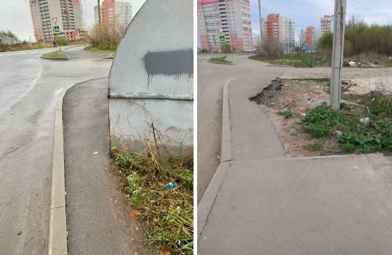 Строительный казус на улице Пугачева произошел еще в 2019 году. При обустройстве тротуара дорожники уложили покрытие «в обход» гаража. По всей вероятности, при выполнении работ между профильными ведомствами не провели согласования. Хотя по правилам незаконную конструкцию уже тогда нужно было демонтировать. Итогом стала пешеходная дорожка, неудобная для людей и даже опасная.