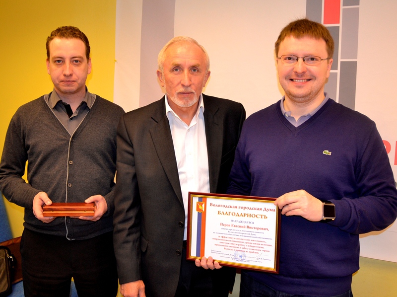 Благодарность Вологодской городской Думы за эффективную депутатскую деятельность и вклад в социально-экономическое развитие города Евгению Перову вручил Председатель городского парламента