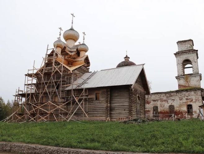 Храм в Вытегорском районе уникален по нескольким причинам. Во-первых, его композиция довольно редка "четверик на четверике". Кроме того, это едва ли не единичный случай, когда рухнувшую церковь удалось восстановить. Правда, этому предшествовали годы забвения, когда покосившиеся купола являлись немым укором для проезжавших мимо туристов.